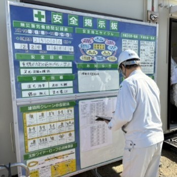 毎月、工事現場に行き、現場環境整備点検を実施しています。環境整備とは、働きやすい職場を作るために、整理・整頓・清潔・礼儀・規律のことで、特に物の整理・整頓を重点に行っています。現場環境整備点検は、社長と同行者が工事現場ごとに21個の点検項目をチェックしています。新人でもベテランでも誰でもできる内容ですが、なかなか満点が取れません。2017年からスタートしたので、9年余り継続し、少しずつレベルアップしてきました。物の乱れは、心の乱れと言われるように、環境の乱れは、安全管理の低下を招き、労働災害事故へ繋がることになります。点検ルールは、決められた時間に工事現場に行き、決められた場所を決められた通りチェックします。抜き打ちやその場でルール変更は、禁止です。社員のやる気を下げないためです。はじめた頃は、汚い工事現場が多かったですが、最近は整理・整頓・清掃が出来た工事現場に変化してきました。毎月1回決められた事を繰り返し行うことで、少しずつ習慣になっていきます。これからも無事故無災害の達成のために、環境整備点検を続けて行きます。