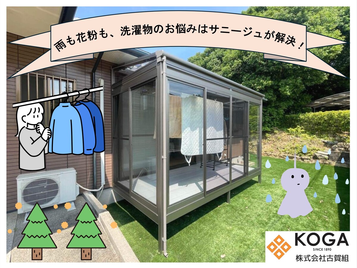 雨の日は室内干しをすると思いますが、外より干せる量が少なくなるという方も多いと思います。ガーデンルームを設けることで、雨の日だけでなく花粉が飛んでる日でも多くの洗濯物を干せるようになります。洗濯物を干すスペースでお悩みの方、ぜひガーデンルームの設置をご検討ください!